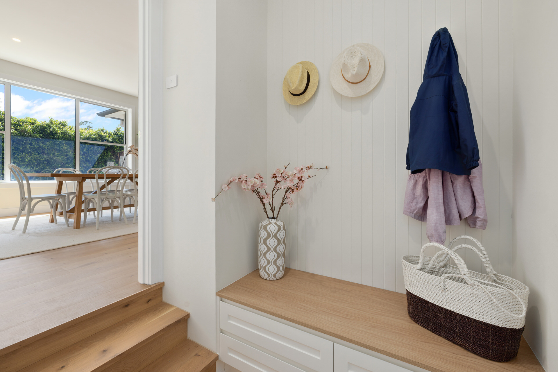 A classic Hamptons beauty reinvented for relaxed coastal family living, this Curl Curl residence blends timeless elegance with laid-back sophistication. Symmetry, weatherboards, plantation shutters and a welcoming front porch set the tone, while inside, light-filled spaces and natural textures create a calm and connected atmosphere.