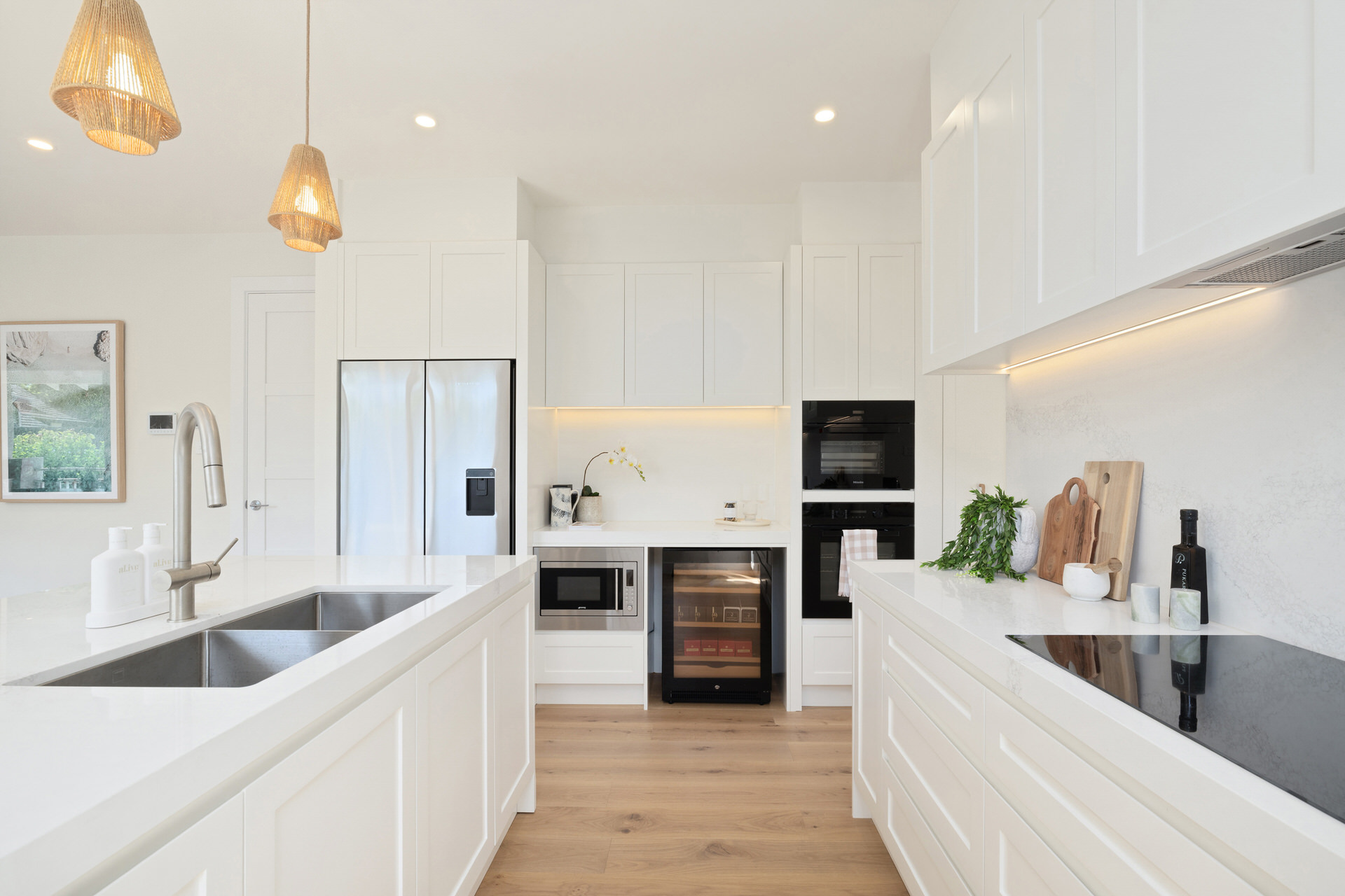 Designed with family in mind, the home features multiple living zones, a generous kitchen at its heart, and seamless flow to outdoor entertaining. Refined yet relaxed, it embraces the best of beachside living with enduring style and thoughtful detail at every turn.